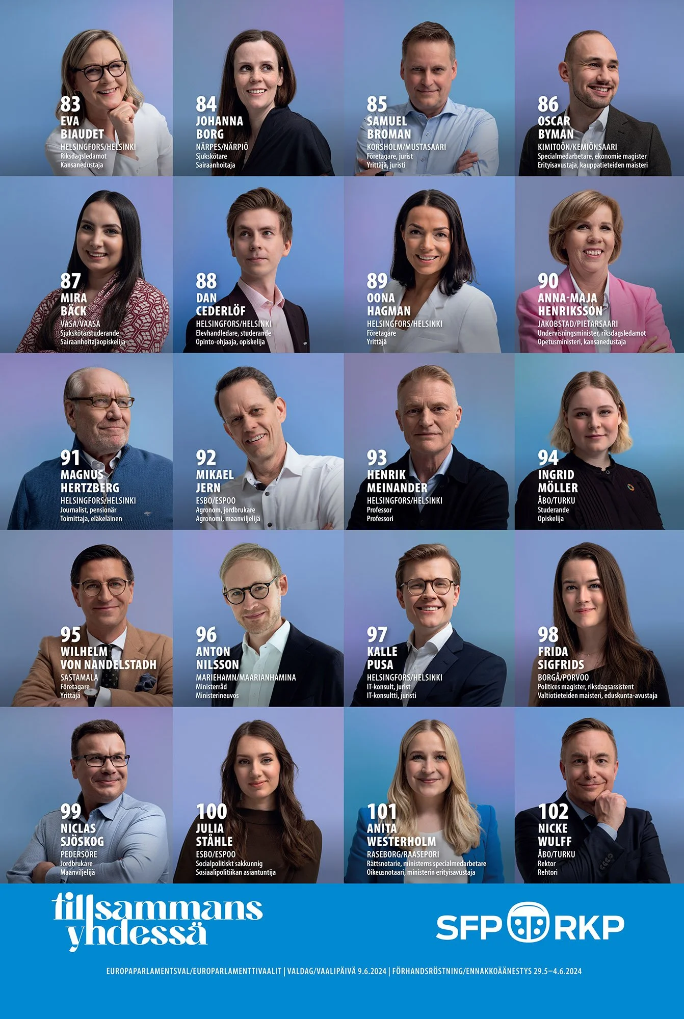 Photgraphy assignments for SFP/RKP MPs. Anders Adlercreutz, Veronica Rehn-Kivi, Eva Biaudet and Anna-Maja Henriksson.